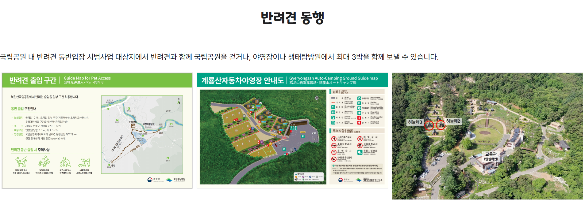 국립공원 내 대부분 지역은 반려견 출입이 제한되지만, 일부 야영장이나 주변 탐방로는 예외입니다.